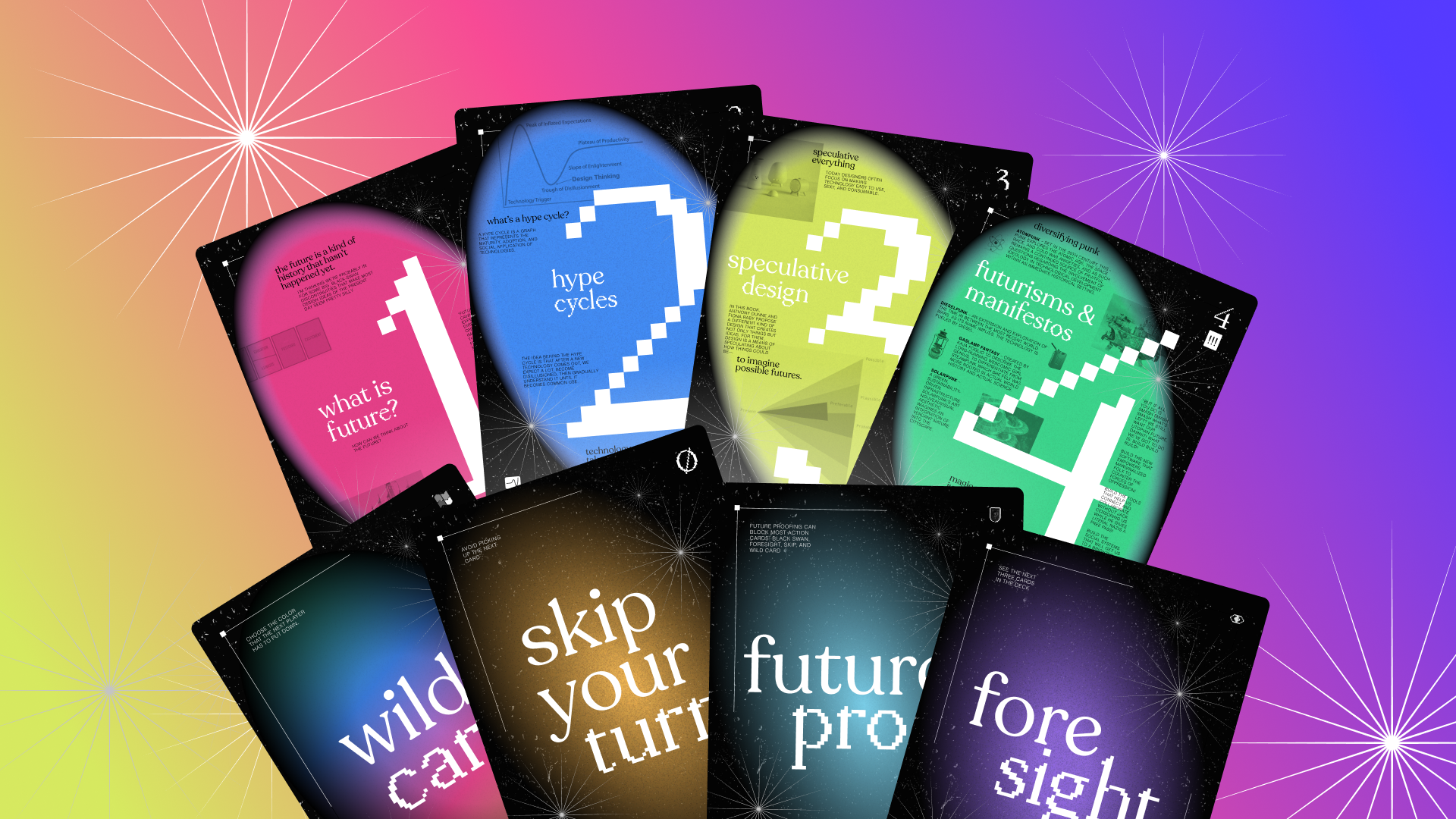 Cards-turned-posters to sum up every chapter of a class on science fiction, speculative thinking, and the future.