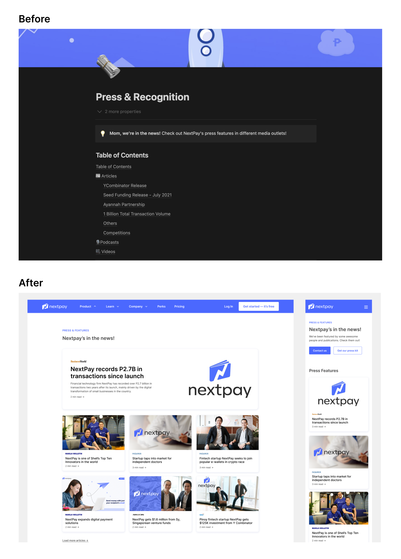 Thankfully, it paid off. It was thrilling to finally see the pages below go live, and clicks on demo booking, press page, and products started rolling in!